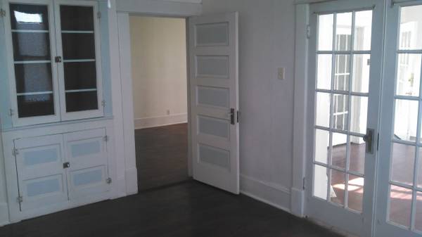 First floor Duplex in Prairie style house in Junius Historic District, with porch fenced front yard 5505 Reiger av., central heat/air, hard wood floor throughout. windows with blinds. - 1 Living room large windows with blinds, fireplace deco. closet double French doors. - 1 Dining Room large windows with blinds, ceiling fan closet, double French doors 1 Bedroom large windows with blinds ceiling fan and light closet 1 Bathroom window with blind full -size tub. - 1Large kitchen large windows, cabinets stove refrigerator dishwasher, - 1 Landry room washer and dryer. Reserved parking space fenced back yard landscaping maintained by company, security light and sensor lights Smoke free. No dog, Cat OK. Must make 3 x rent. For appointment call: show contact info