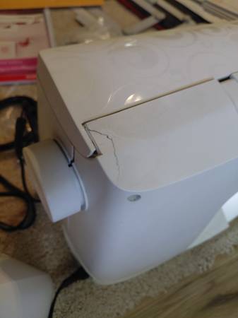 Bought used, used a few times, nothing wrong with it except the cosmetics cracks in housing ( pics included, I took in to have it serviced and it was dropped im guessing due to the cracks but it works fine, the performance is NOT affected( pic of a play stitch out) original papers and manual, flash drive on a lanyard, I dont like the snap in hoops so I bought few magnet ones, carrier for the embroidery arm unit, a roll of cut away stabilizer, a lot of extras, boobins, needles, , feet, housing carrier, cables for PC, all you need is thread...I thought I would like this brand instead of the tubular type that im used to but I don't, so im going back to tubular style. Pick up only, cash only, if this is posted it's available. $2700 OBO