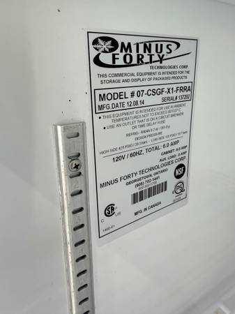 Minus forty undercounter freezer $595 Minus forty commercial undercounter freezer Model: 07-CSGF-00-1C000 Usa Made. 115V. 7.41 cubic feet. Overall dimensions: 28W 33D 32H Works great!!! Haris: