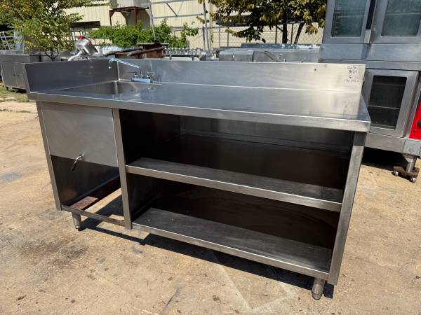 Stainless steel cabinet with sink $800 Very heavy duty, thick gauge stainless steel cabinet / table with sink. No flaws. Very sturdy. Dimensions: 66x30 Compartment dimensions: 20 16 12 Message for...