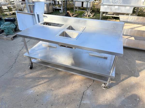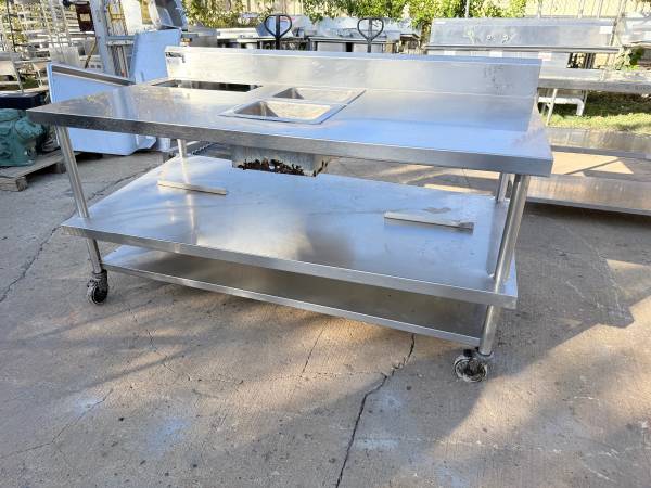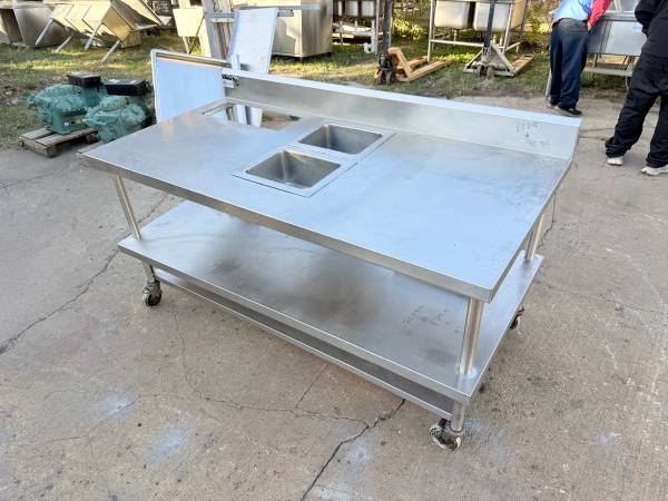 Stainless steel work table $225 Very strong, heavy duty stainless steel work table. In great shape. Full 14 gauge stainless steel. Has a cut out and 2 built in pans. Dimensions: 70x35 On wheels 2...
