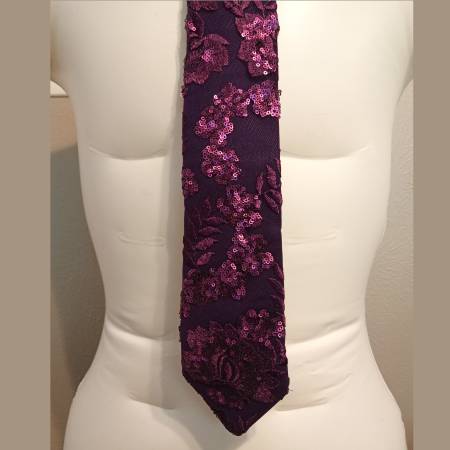 It is a custom made one-of-a-kind tie. My dance partner added fabric to a zipper tie to match her dance costume dress she was wearing in our contests.