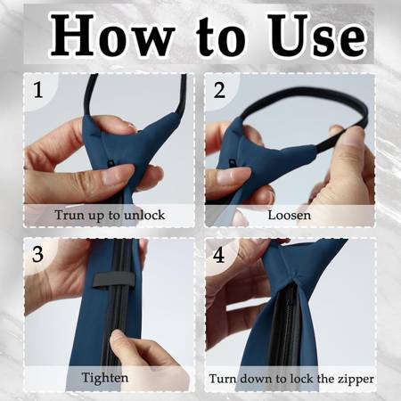 This is a zipper tie, also known as a "Zip Tie" -- You put it on and off by zipping and unzipping the back part of the tie. See the photo in this listing for more info.