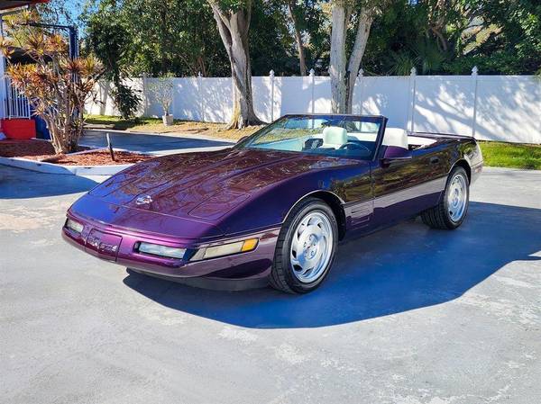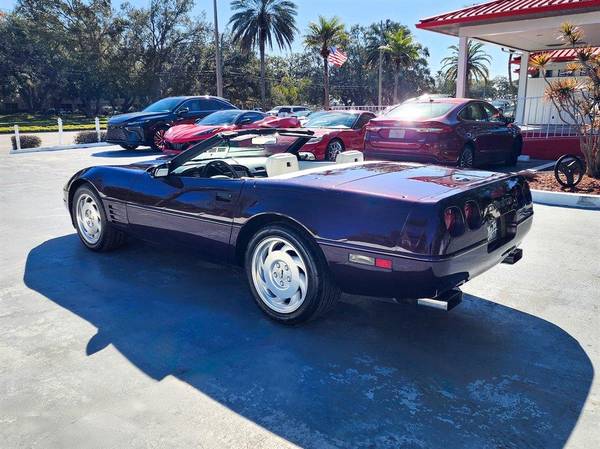 CORVETTE 1993 CONVERTIBLE, EXTREMELY RARE Black Rose Metallic with Arctic White Leather Interior and Matching Convertible Top, 6-Speed Manual Transmission, Preferred Equipment Group 1, Electronic Air Conditioning, AM-FM Stereo System with CD Player and Bose Speakers, Dual Power Sport Seats, AntiLock Braking System, Acceleration Slip Regulation, All Power Options, Extremely rare Corvette - Believed to be one of less than 20 produced in this color combination and options! Showroom new!!! New Tires, New Convertible Top. This stunning two owner Corvette has been driven on average less than 1200 miles per year! LT1 Engine 5.7 Liter Fuel Injected 300 H.P. V8. This vehicle qualifies for our exclusive V.I.P. financing plan, Compare at $23,900 - Sale $19,875 / $269 mo. V.I.P. Call for details. Toy Store, Largo, Fl. 727-585-6000 www.vettenet.com Open 6 days, Sunday by appointment WE BUY CLEAN CORVETTES! Shipping asistance available to 48 states. We can help with less than perfect credit.