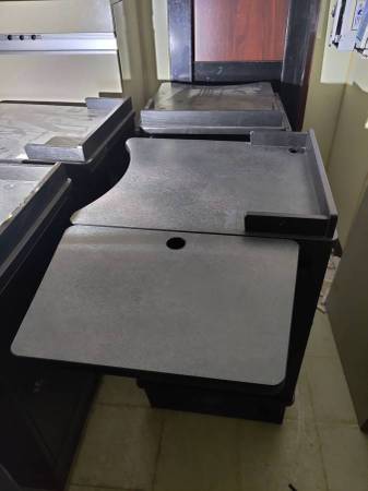 Whether you call it a podium, lectern, dais, platform, pulpit, rostrum, soapbox, or stump, these will give you center stage for whatever it is that you are presenting or teaching. They can also be used as a checkout station, a greeter stand, or a valet kiosk. These podiums measure 27.5"W x 28"D x 36.5"H. and have some folding side shelves that give you an extra 16" of space on each side.