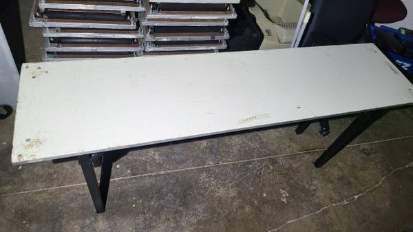 The tables measure at 72"W x 18"D x 29.75"H. The tables are made with a white colored plywood top with black colored frames and legs. The tables will vary in condition with most of them having some wear on the tops. Overall though, these tables are still really solid, well built, and more heavy duty than most folding tables. You can use these to set up an event space, maybe needed an extra table at home, or even as a work surface. You can see these at Recycled Furniture here in Irving. We sell mostly office and school furniture if that is something you're looking for too. Feel free to contact us for more info. You can also just click on the "more ads by this user" link for more of our inventory.