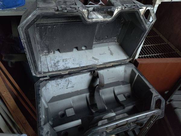 We have some Scott Air-Pak cases available for $15 each. These are typically used for scuba tanks and retail for several times more new! These containers are about 29"W x 14"D x 20"H. They are made of hard dark gray plastic. They use plastic clips built in to secure your cargo and have handles attached for easy carry. You can easily use them to just store tools, instruments, tanks, and many other items that you need to transport around. They are not particularly pretty from use and storage but are fully functional.