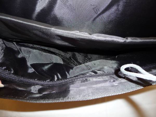 additional zippered area for storage. Back of bag has zippered area hidden by a flap.