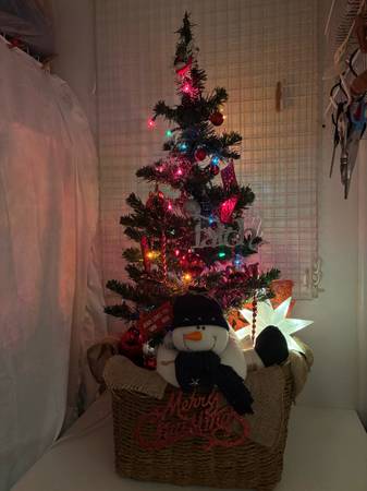 Tabletop Christmas Trees The Snowman Basket Tree - $45 Tree In Boot - $20 Tree Standing On Table - $25 Small Tree In Burgandy/Red Bucket - $12 Tree In Silver Bucket - $15 Pickup In Wylie
