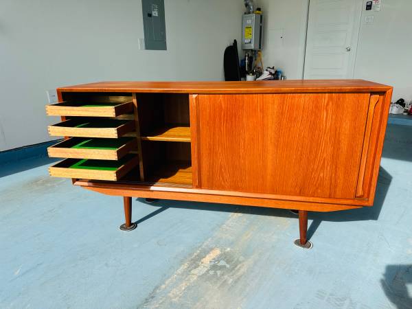 We have a Beautiful Vintage Mid Century danish Modern Teak Sideboard Credenza Cabinet with slide doors.Quality Designing from Sweden.