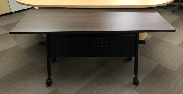 Used - Excellent Condition Manufacturer - IOF Size - 60" Wide x 24" Deep Walnut Laminate Top Black Metal Frame We have 14 $275.00 Each Table