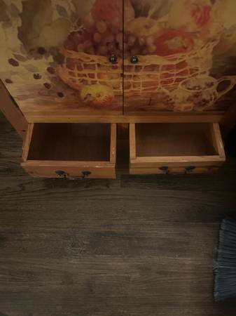 Asking 40 for a winery scene storage cabinet all wood in great condition running out of room nice piece 2 drawers and storage need gone plz serious inquiries only text or call 31 tall 33 wide 13...