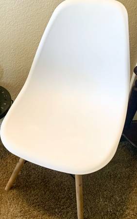 2 - Elon Series White Plastic Chair with Wooden Legs modern/Retro. See pictures for measurements and details pick up in Wylie, cash or Venmo Stylish white chairs with wooden legs, perfect for any...