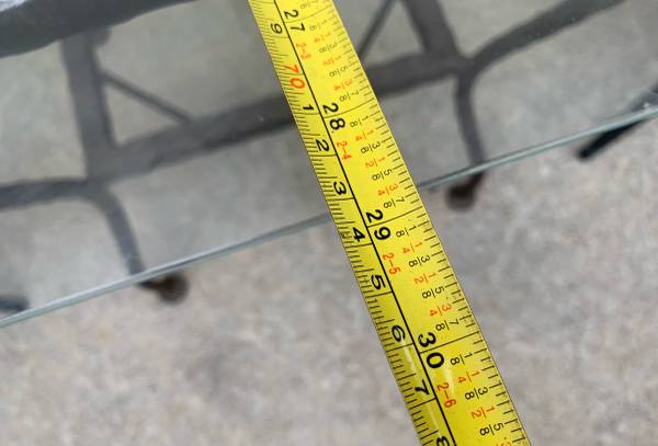 glass top table with sturdy iron frame and two microfiber upholstered chairs. All in good condition see pictures for measurements and details pick up in Wylie, cash or Venmo