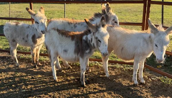Mini donkeys most ages, colors, males, and females. Located in Commerce Tx, delivery available if needed. Twelve hundred and up! Contact us for more info 214. 289. 96. 42 text/call . Leave vm if no answer. Delivery available nationwide.