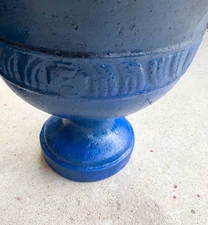 Sturdy blue urn style pot/ planter, perfect for outdoor use. See pictures for measurements and details pick up in Wylie, cash or Venmo