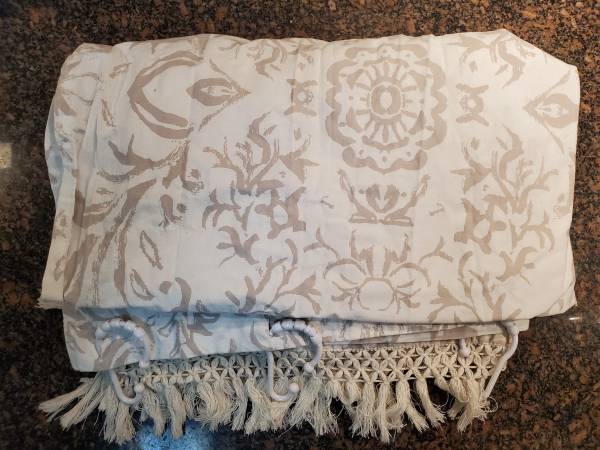 I am selling 2 shower curtains. They have never been used. The brand is Threshold. ***If you can read this they are still available. Please only contact me if you are serious about purchasing them...