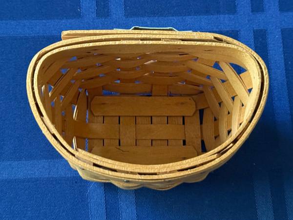Longaberger Small Wall Basket for $15. Measures 3.5" Tall x 5" Wide x 3.25" Deep. 1998 If interested please text for quickest response. This ad will be deleted when item is sold. Woven Wooden