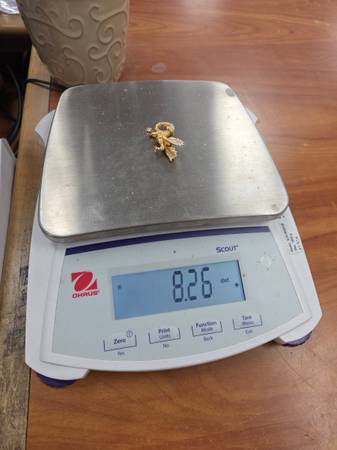 14k YG dragon pndt with diamonds in it. It's a little bigger than a quarter and weighs 8.26 dwt or 12.84 grams. Looking to sell for 1.2k... I'm located in Greenville TX