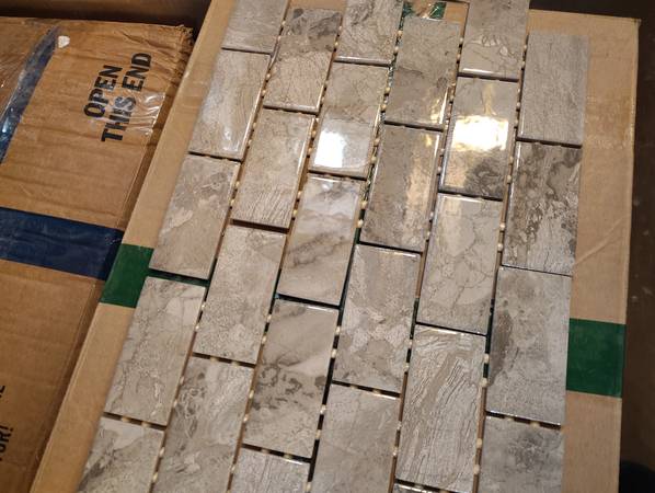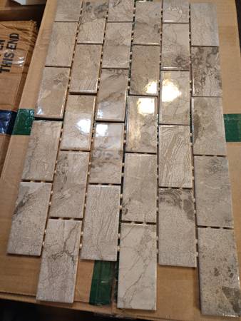 Have 100 sq available 10 sq per box all new great for shower wall and backsplash and more $2 a sheet