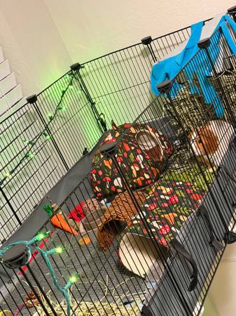 Found two little male guinea pigs in a bush dump, dumped in my apartment complex. The black one unfortunately did not make it. However, the white and orange ones seem to be doing very well. Not sure how long they were abandoned however, I do need to find him a good home. Serious inquiries only.