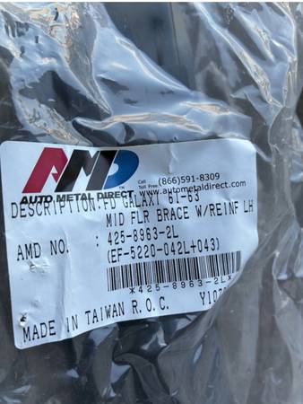 The AMD Auto Metal Direct driver side mid floor brace is a high-quality, 16 gauge steel component designed specifically for Ford Galaxie models. It comes with a 1-year manufacturer warranty and is a direct replacement part, ensuring a perfect fit for your vehicle. This brace is a crucial addition to your car's interior, providing support and stability for a smooth driving experience. Light scratches
