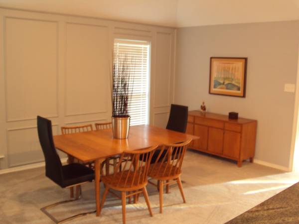 Furnished, carpeted bedroom, queen bed, night's stands, double dresser, ceiling fan and 11 foot. closet with 2 doors and shelves. Full size tub / shower bath. This bedroom is in a four bedroom home in a very nice part of Mesquite, TX.; 15 minutes from downtown Dallas. This all brick, modern home has 2 living areas, fireplace, black, wrought-iron fenced back-yard with wood deck. Behind house is a paved 3.5 mile walking / bicycle path through a wooded area with a creek that runs next to the entire path. Paved path has parks at both ends and a frisbee course on the other side of the creek. Greenbelt / forest behind house; no houses behind house, very private. Three vehicle, wide drive-way behind house. Mesquite Mall, fast food, drug stores, 4 grocery stores and a Walmart within 5 minutes. No couples, children, pets, smokers, druggies and only light drinkers please. Legal Month-to-Month lease; Landlord lives on property. Male or female tenant okay. $700. Call or text to show contact info