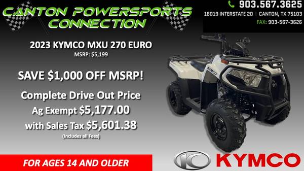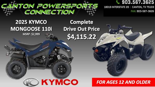‼️NEW KYMCO ATV MODELS‼️ SAVE UP TO $1,570 OFF MSRP! COMPLETE Drive Out Price (including all taxes and fees): 2025 Mongoose 110i (Blue or Gray): $4,115.22 For ages 12 and older. 2023 MXU270i EURO:...