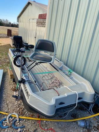 Pelican prowler 8 foot, 2 folding seats, Like new well kept, covered used 3 seasons in East Texas. Bought from Bass Pro. Pirranna Max side scanning depth/ temp/ fish finder. And a Minnkota Endura 55 thrust ( better than the 30) variable speed trolling motor. No punctures no scaring. I built a cradle to pull it down to the boat ramp or launch it from the camp site. Made of pressure treated 2X4” strapped down anchor points. Current registration till May2025. Titled boat motor n fish finder kept in dry area. I would consider the battery to go with it. ( you know how expensive batteries are now) nothing wrong with it, just don’t haul it around as much as we thought we would. Any questions,