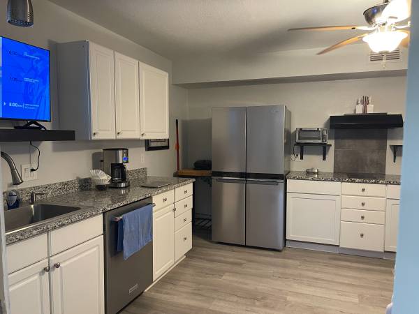 My sister's personal things have been taken away. We left the furniture. 733 sq.ft. nice kitchenette to prepare a great meal, washer/dryer, queen bedroom, high quality mattress, leather chair to relax watch t.v. from in bedroom. 2nd t.v. in kitchen living area. Nice desk nook. Screened porch, private yard. You found a home completely furnished. You bring your daily living needs and you are set to start life. No smoking. Designated parking off street. A clean place with plenty of space for comfort. You may not have others in the place without full disclosure of who they are in advance. It is a part of our home you would feel the same. Any question feel free to ask.