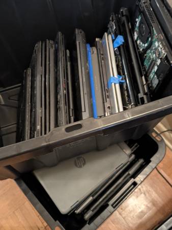 Total mixed lot of laptop computers. HP, Dell, Toshiba, Acer, Asus, mostly. Some turn on, some have hinge issues or bad LCD. Some have good LCD but won't turn on etc. checked a few of them out, got these years back and never ended up doing anything but moving and need them gone.