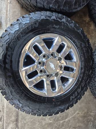 Selling set of 4 Chevy 2500 wheels in great condition with like new tires.