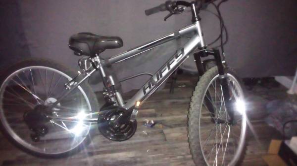 Up for sale is a 24" Huffy mountain bicycle that was bought from Walmart for $100 and used for two days. The seat has been replaced with a super soft aftermarket seat with springs that feels like a motorcycle seat.