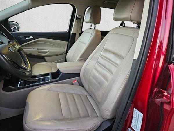 * Equipment Group 301A * Engine: 2.0L Ecoboost * Voice-Activated Touchscreen Navigation System * Leather Seats * Navigation System * Ruby Red Metallic Tinted Clearcoat * Lane Keeping Assist * Keyless Start * Medium Light Stone; Heated Leather-Trimmed Buckets W/60/40 Rear Seat * Transmission: 6-Speed Automatic W/SelectshiftThis vehicle includes a Money-Back Guarantee* and passed our precise inspection process. Best of all the price you see is the price you pay. No haggling. No back and forth. No pressure. And this price is so good it is guaranteed. *Money-Back Guarantee is valid for 5 days or 250 miles, whichever comes first. Subject to certain terms and conditions. See store for details. Some restrictions apply.2017FordEscape This Ford includes: ENGINE: 2.0L ECOBOOST 4 Cylinder Engine Gasoline Fuel Turbocharged *Note - For third party subscriptions or services, please contact the dealer for more information.* This Ford Escape Titanium is an incredibly versatile vehicle that is a "must have" for any family. One of the best things about this Ford Escape is that it has low, low mileage. It's ready for you to truly break it in. More information about the 2017 Ford Escape: The 2017 Ford Escape is a sleek, rakish, modern design, yet it is surprisingly roomy inside. Also surprising is how well the Escape responds and handles -- as if it were a sport wagon. The Escape's turbocharged powertrains are standouts in this class, offering more power than you get elsewhere, plus excellent fuel economy. In terms of tech features, between the "Sync 3" infotainment system, an active park assist system and active-safety features like BLIS, the Escape stands far apart from more plainly presented crossover wagons. Strengths of this model include Stronger performance and better handling than other small affordable crossovers, excellent "Sync 3" infotainment and connectivity, impressive maneuverability, excellent fuel economy, and spacious interior