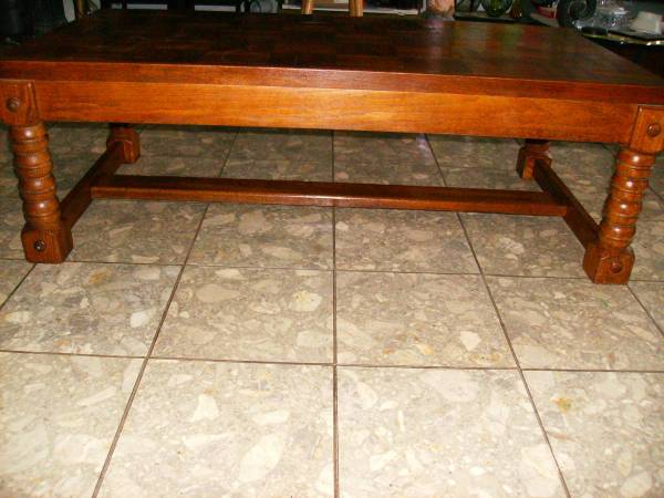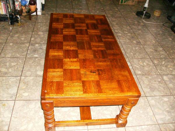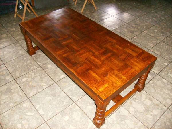 Nice parquet top coffee table measures approx 25"W x 49"L x 16"H. Please click on "Other Ads by User" and see what else we have that you can't live without.