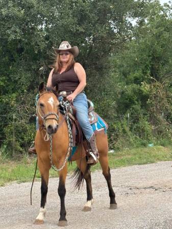 Buckskin quarter Horse sprocket 12 yrs. He is kid friendly.