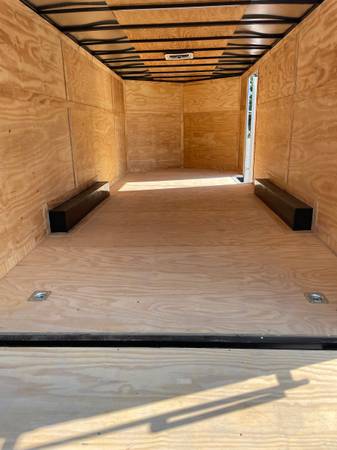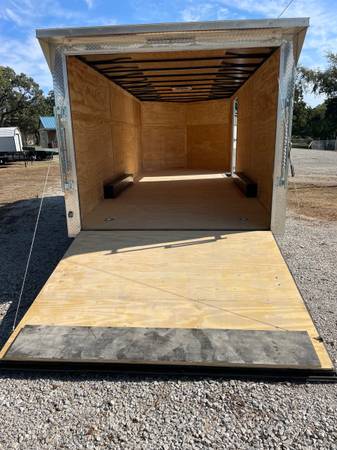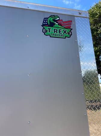 Frontier Trailers in Springtown offering this unused T-Rex 20 ft enclosed car hauler trailer. It comes with 2 5200 lb braking axles, 6'6"inside height, V-nose, Rear ramp door, passenger side entry door, LED lighting all around and inside, 4 D-rings, Dovetail, 2-5/16 bulldog hitch, breakaway switch, 7k drop leg jack, RV door lock, and roof vent. This trailer originally listed for $9495 when it hit the lot but now I have dropped the prices to sell my remaining inventory and close the business forever. Please note that I am not operating here as a Texas licensed dealer but as a private citizen. Call Robert seven days a week at 817-333-9038 and I will get you hooked up. (Church on Sunday morning)