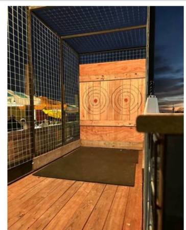 Mobile Axe Throwing Trailer with everything needed to start your own business. Comes with RGB lighting, throwing axes, kids ninja star targets, everything needed for an event! Brand new tires and will come with bill of sale. Homemade 16 ft trailer. Trailer measures 12 ft tall. This trailer would also make a good trash hauler or landscape trailer if so desired! Located in Fort Worth area, but can deliver or meet for serious buyers. Rents for $250-$300 per hour as an axe throwing business with minimum 4 hours. As a trash hauler you could make $500 a load.