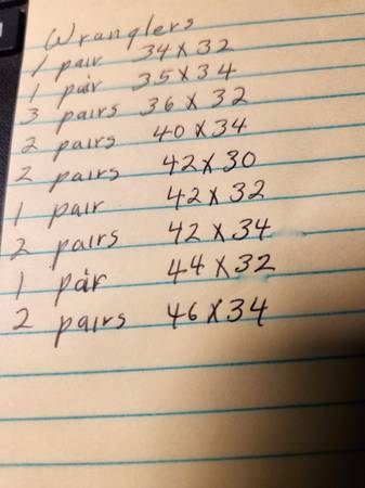 nice men's jeans, sizes 34 to 44 how many of each, the list is on the last photo on last photo. The sizes 36 to 32 have been sold. If the Ad is on the rest are still available.