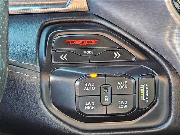 * Trx Level 2 Equipment Group * Mopar Rambar * Wheels: 18" X 9" Bead-Lock Aluminum * Dual-Pane Panoramic Sunroof * Trx Carbon Fiber Package * Harman/Kardon 19 Speaker Premium Sound * Mopar Bed-Mounted Tire Carrier * Mopar Trx Hood Graphics * Panoramic Roof * Blind Spot & Cross Path Detection * Leather Seats * Mopar Trx Exterior Graphics * Surround View Camera System * Navigation System * Parksense Front/Rear Park Assist W/Stop * Trailer Tow Group * Lower Two Tone Paint * Remote Start System * Hydro Blue Pearlcoat * Keyless Start * Cooled Front Seat(S) * Black; Leather Trimmed Bucket Seats * Diamond Black Crystal Pearlcoat * Engine: 6.2L Supercharged Hemi V8 Srt * Transmission: 8-Speed Automatic (8Hp95)This vehicle includes a Money-Back Guarantee* and passed our precise inspection process. Best of all the price you see is the price you pay. No haggling. No back and forth. No pressure. And this price is so good it is guaranteed. *Money-Back Guarantee is valid for 5 days or 250 miles, whichever comes first. Subject to certain terms and conditions. See store for details. Some restrictions apply.This outstanding example of a 2021 Ram 1500 TRX is offered by AutoNation Chrysler Dodge Jeep Ram North Fort Worth. This Ram includes: ENGINE: 6.2L SUPERCHARGED HEMI V8 SRT (STD) Supercharged 8 Cylinder Engine Gasoline Fuel *Note - For third party subscriptions or services, please contact the dealer for more information.* This Ram 1500 TRX is for the discerning driver who demands the utmost of his vehicle. Take home this Ram 1500 TRX, and you will have the power of 4WD. It's a great feature when you need to drive over tricky terrain or through inclement weather. One of the best things about this Ram 1500 is that it has low, low mileage. It's ready for you to truly break it in.