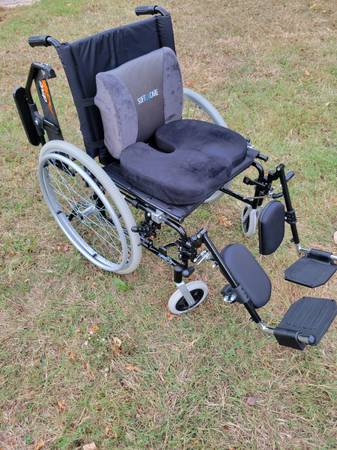 Selling New condition wheelchair very clean, no rips or stains. Frame capacity 275 lbs, adjustable height. Drive Medical K518FBADDA-SF Lynx Ultra Lightweight Wheelchair, Swing Away Footrests, 18" Seat, 275 lb Weight Capacity, Aluminum Frame, Push-to-Lock Wheel Locks, Swing Away Footrests