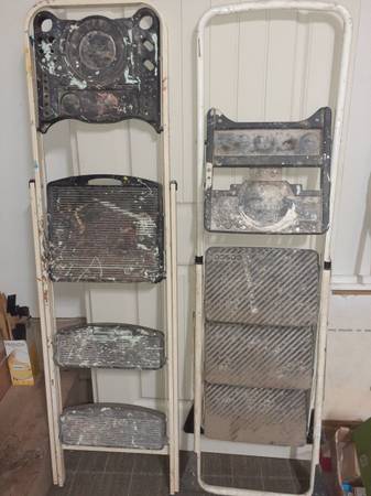 $30 larger one (small one sold)...Light and sturdy with deep steps and tool shelf...fold completely flat, paint on them but nothing broken/bent. taller one top step is 31" high/shelf 48", shorter one top step is 28"/44" shelf height. Pick up 3 mi W of Cowboy stadium Arlington. Cooper/Mitchell St