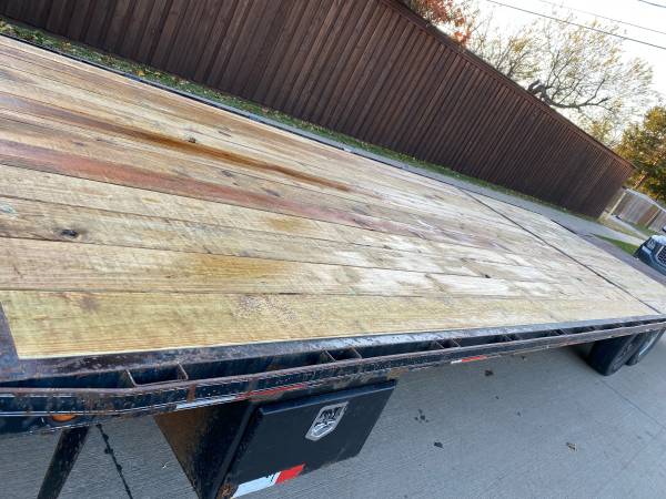 Really nice. 30 feet goosneck Trailer, it’s 25 feet of deck and 5 feet on ramps 8ft wide it has straps around to secure load new floor , all lights working and good tires . comes with tittle , I no longer use it as much asking 6800 txt or call me 817-673-548nine thanks .