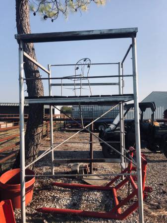 Heavy Built stand 9ft tal. 6 ft to floor from ground5ft 6x 5by 6❗️hay forks an chair does not go❗️