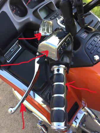 After matket parts; Illuminated Switch Controls / Kuryakyn Driver Touring Pegs / Back off Brake Light Flasher / Passenger Arm Rests / Driver back rest, Passenger / Kuryakyn Throttle Boss / Mirror Mounted Turn Sigfnals / Mirror Mounted Wind Deflectors / Kuryakyn Transformer Passenger Floorboards / Cell Phone , GPS Mount / Extra Tall Windshield / Stock Windshield / Fork Mounted Foam Wind , Rain Deflectors / Kuryakyn Custom Shifer Peg / Kuryakyn Custom Brake Pedal / Rear Fender Accessory Light / Front Dender Accessory Lights / Chrome Trunk Trim / Chrome Saddle Bag Trim / Kuryakyn Driver Folding , Touring Pegs /