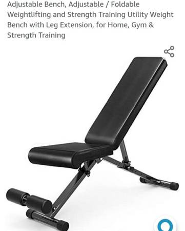 as this is where I live. The last four pictures are from the advertisement when I bought them. The first pic is The bench standing up and the weights laying down on the floor in the case in my storage room. There are no rips in the bench there are no mechanical issues with any of this equipment. $150 or make me an offer that we can agree otherwise it's just sitting in my storage room.