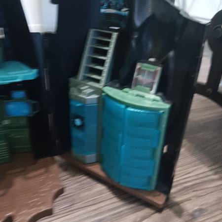 This huge batman playset is in great shape with very light wear, nothing broken, sound works and comes with 3 figures (Batman, Superman, Robin)