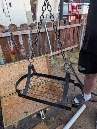 Flat black, ceiling mount, steel pot rack. Jason 4 six 9 fife won 0 seven too 66