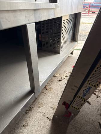 CounterCraft hot/cold commercial seeing table. Bought at auction when we wanted to open commercial kitchen in the barn. Sold to me as working when removed from service. I have never added to 210v (single phase) power to barn to try. You are welcomed to bring a generator. No damage. Very good condition other than dirty from being in barn. It is about 6’long, 3’ wide plus tray table and about 5’6” tall. All approximate dimensions. All glass and tiles perfect.