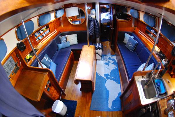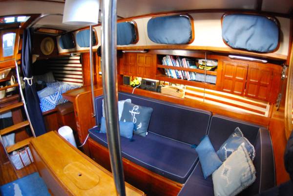 rigging. Sails are solid(2009). New deck hatches in 2012. Upgraded to Stainless Steel ports all the way around in 2012. Beautiful woodwork throughout the interior with Teak and Holly sole. Dry boat with dry bilge. Bulkheads and chainplates are solid and dry. 3 31 series batteries(2 house AGMs 1 start) Perfect cushions and fabric throughout.